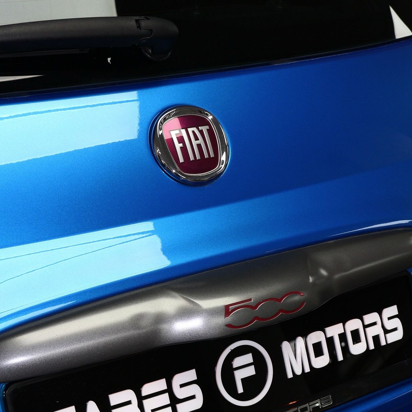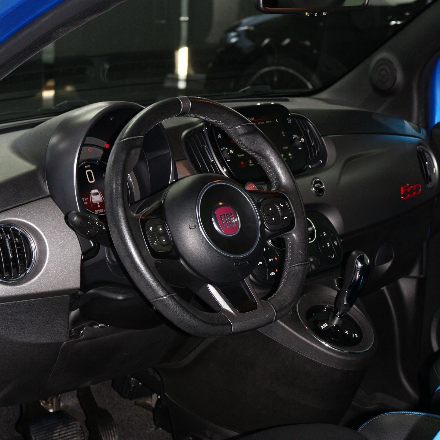 2019 Fiat 500S has only 27,000 km, a stylish blue exterior, and a black/blue interior. Ideal for city driving