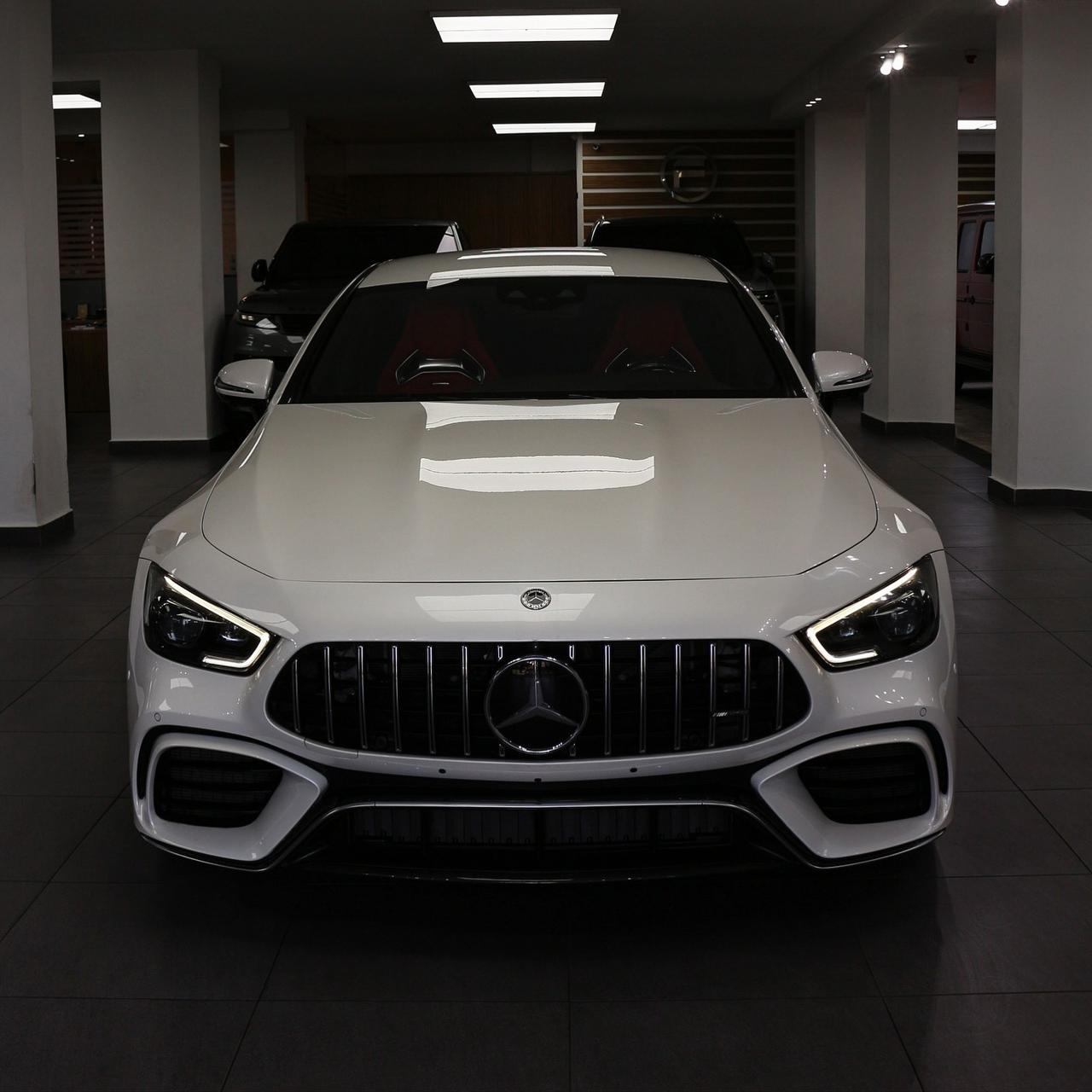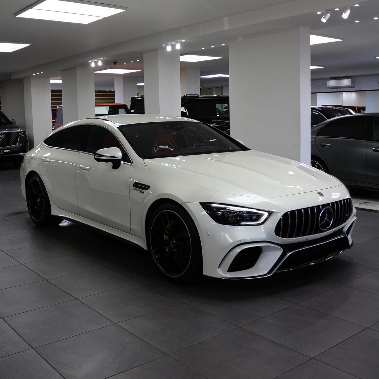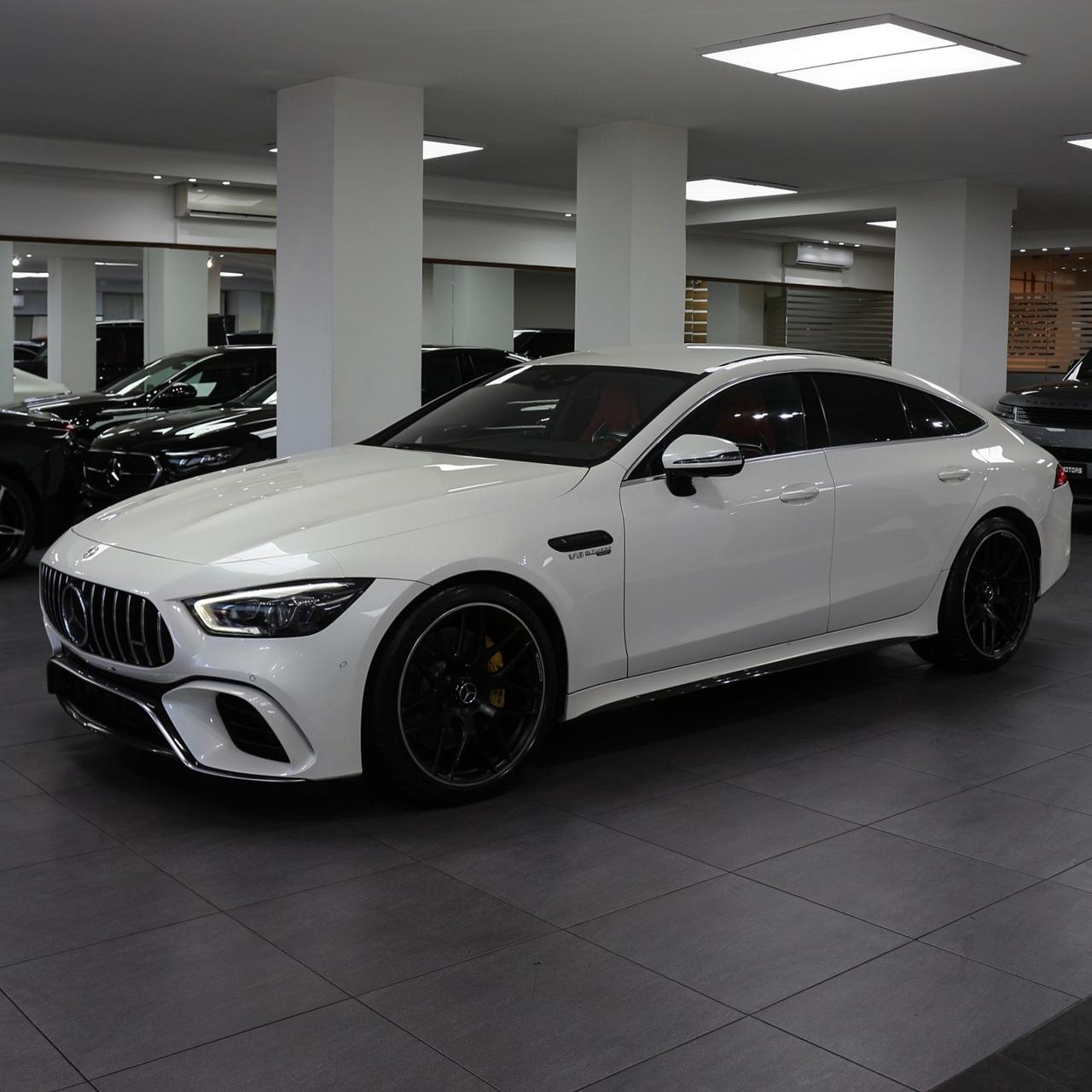 Experience the ultimate blend of power and luxury with the Mercedes-AMG GT 63 S 4-Door. Its 4.0L V8 Biturbo engine delivers 630 HP and 664 lb-ft of torque, while the stunning white exterior and fiery red interior make a bold statement.