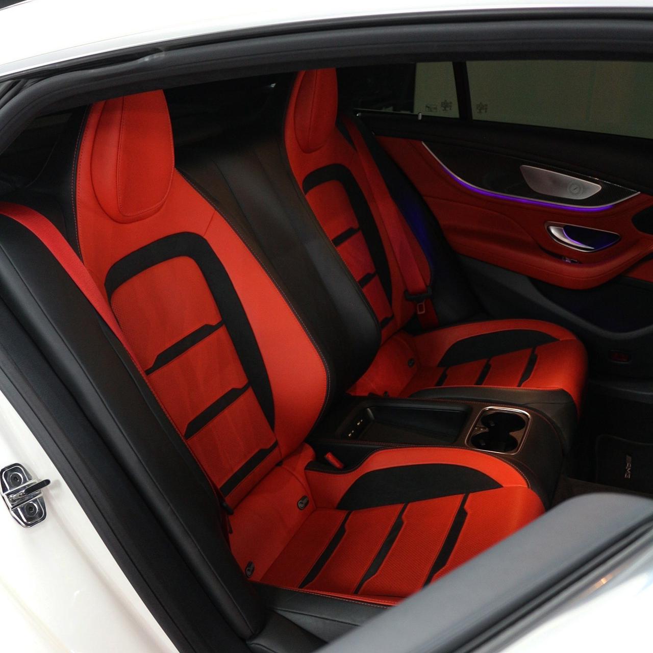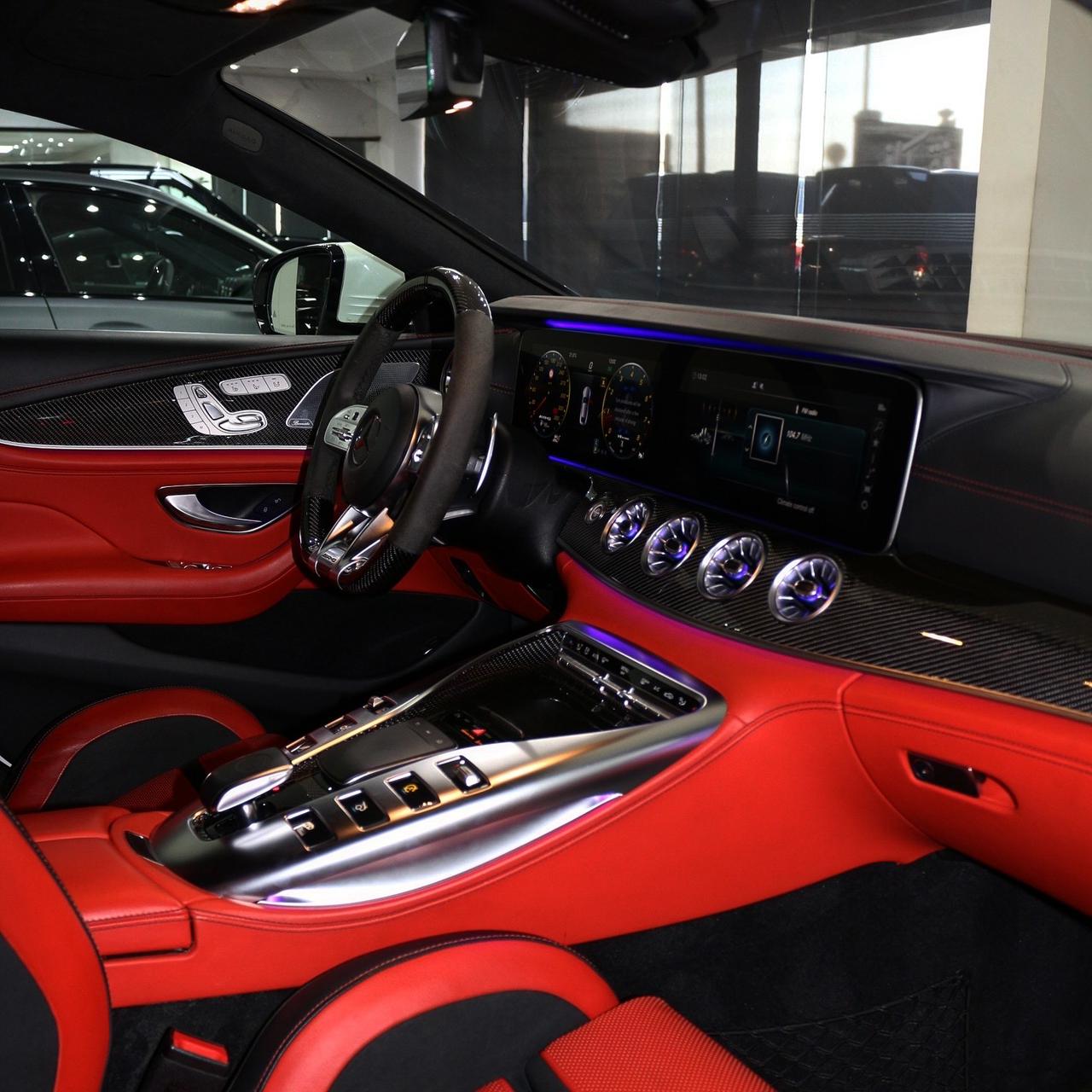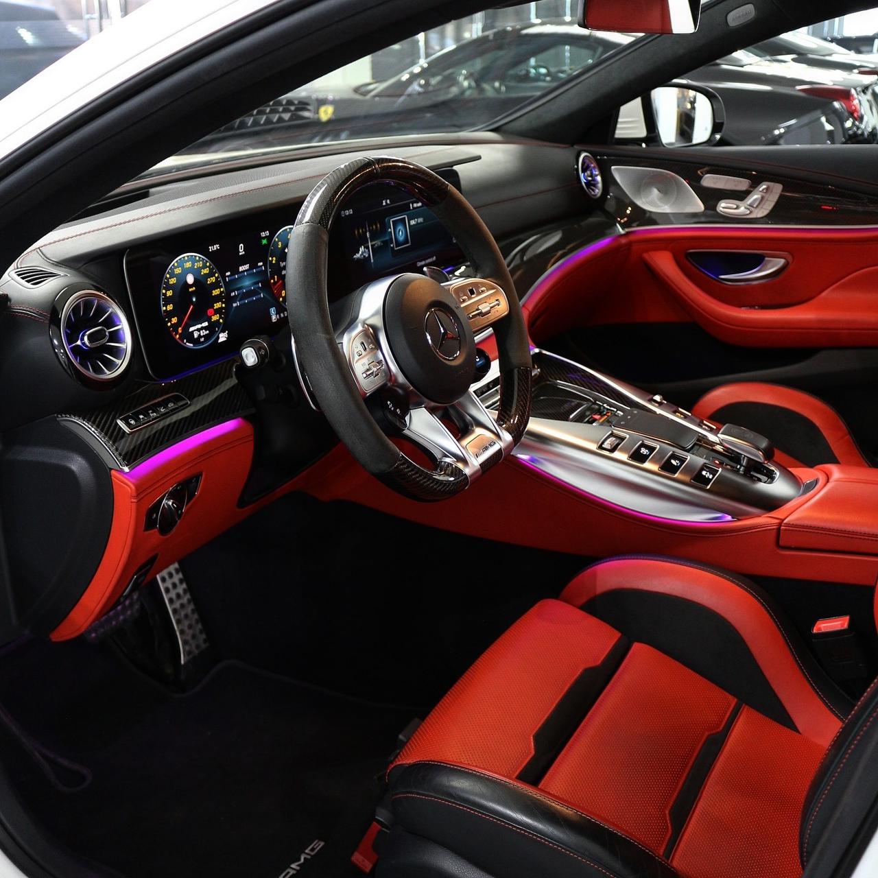 Experience the ultimate blend of power and luxury with the Mercedes-AMG GT 63 S 4-Door. Its 4.0L V8 Biturbo engine delivers 630 HP and 664 lb-ft of torque, while the stunning white exterior and fiery red interior make a bold statement.