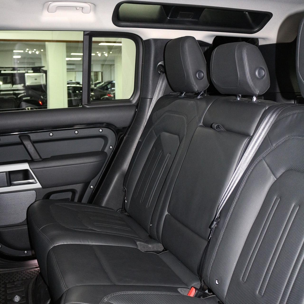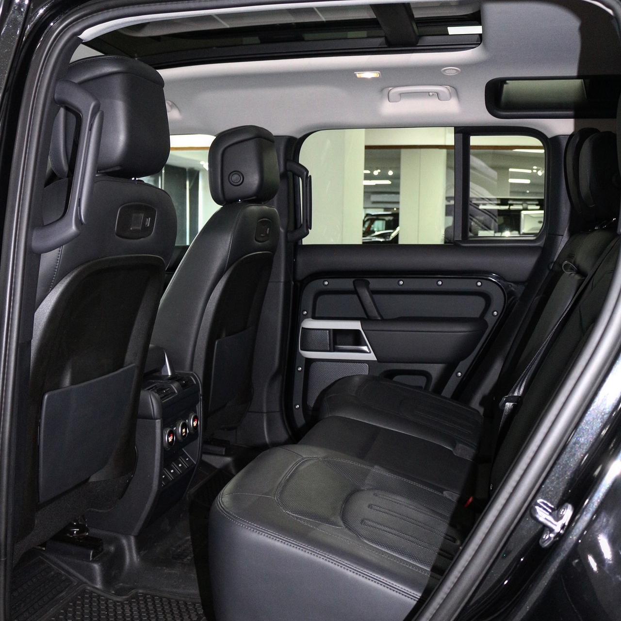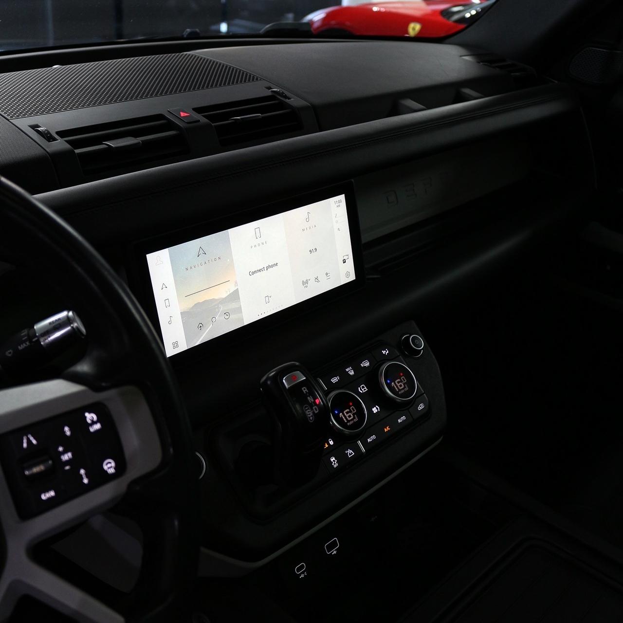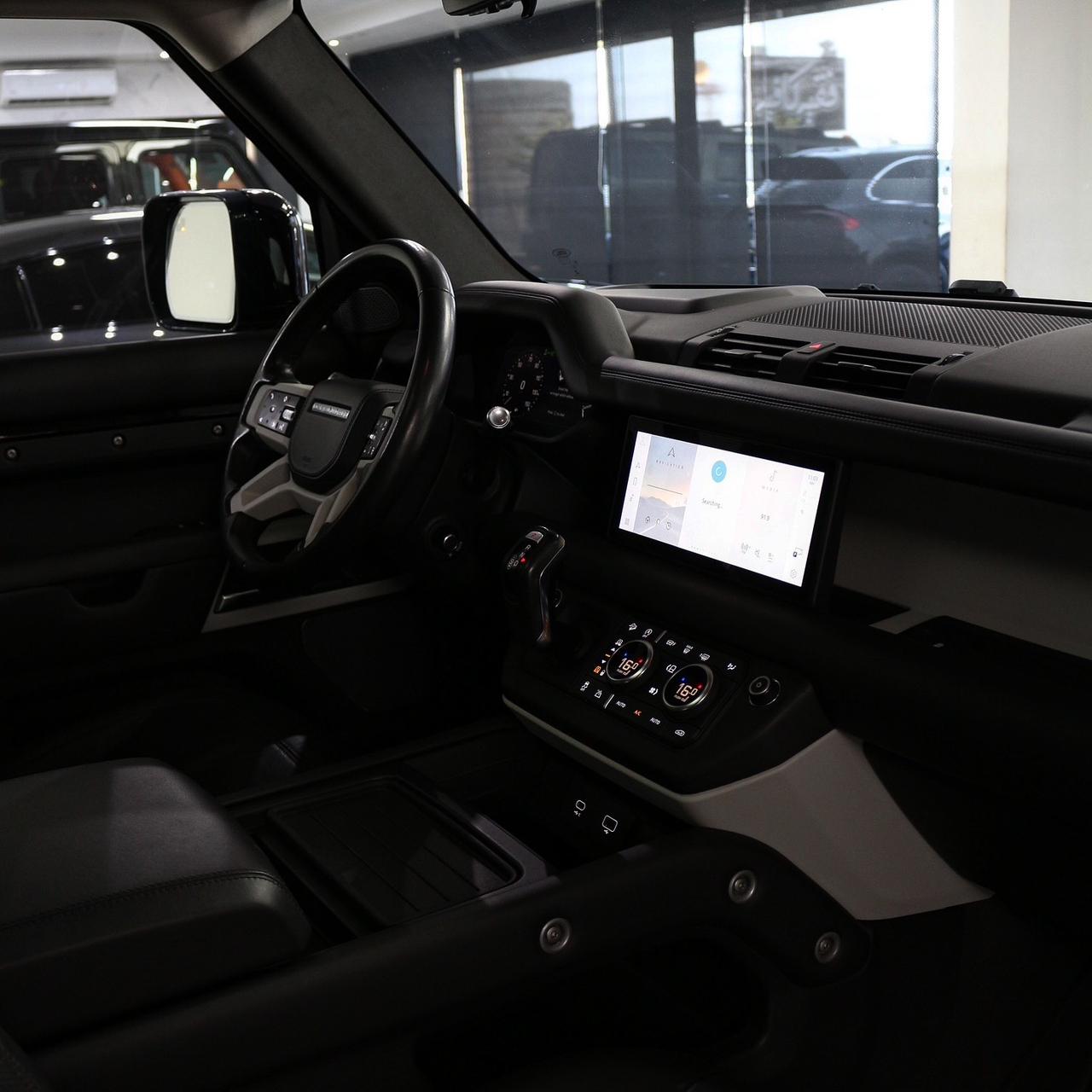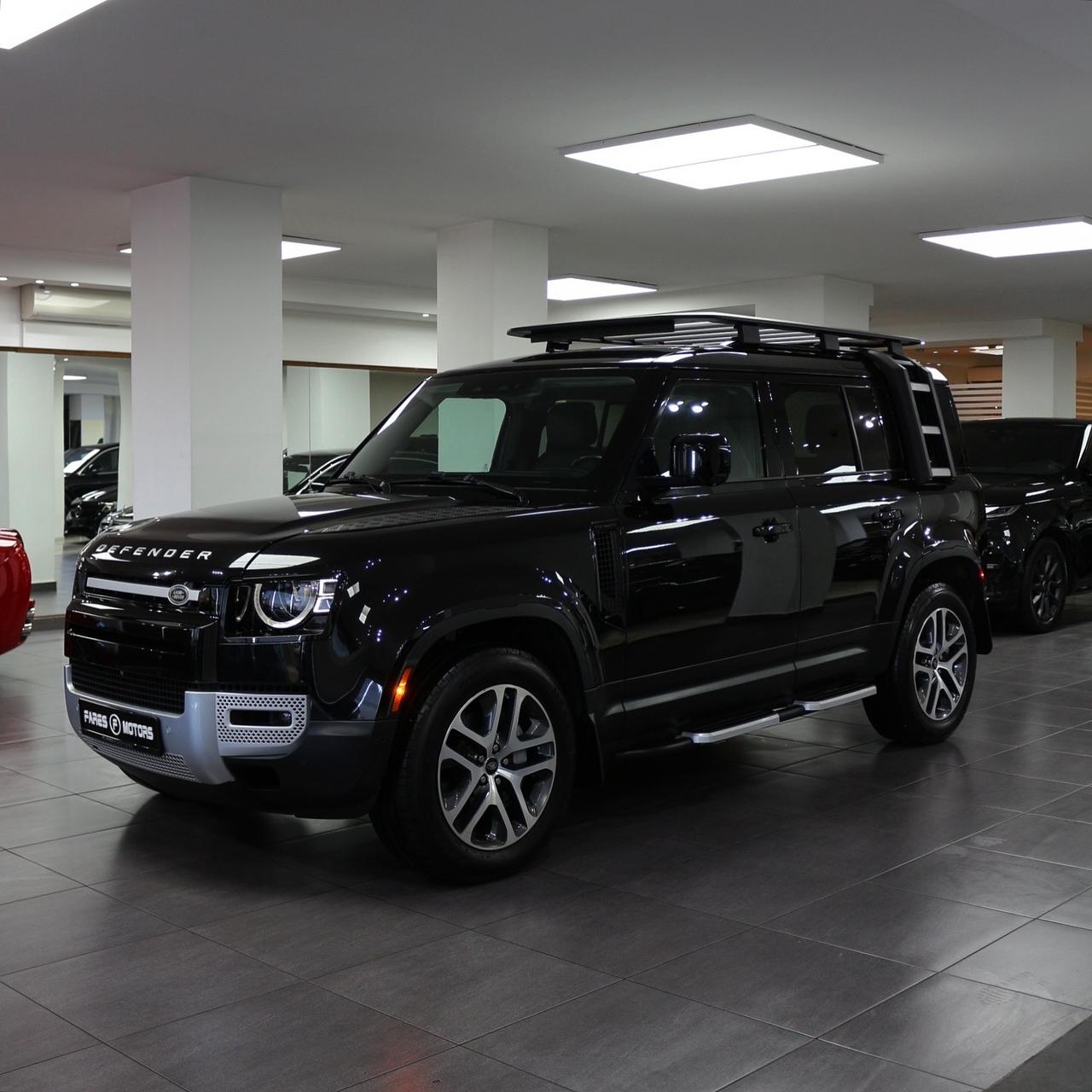Explore the 2020 Land Rover Defender HSE in sleek black-on-black with a clean Carfax. Equipped with a powerful P400 V6 engine, it delivers 395 hp and 406 lb-ft of torque, merging luxury with outstanding off-road performance for every adventure.