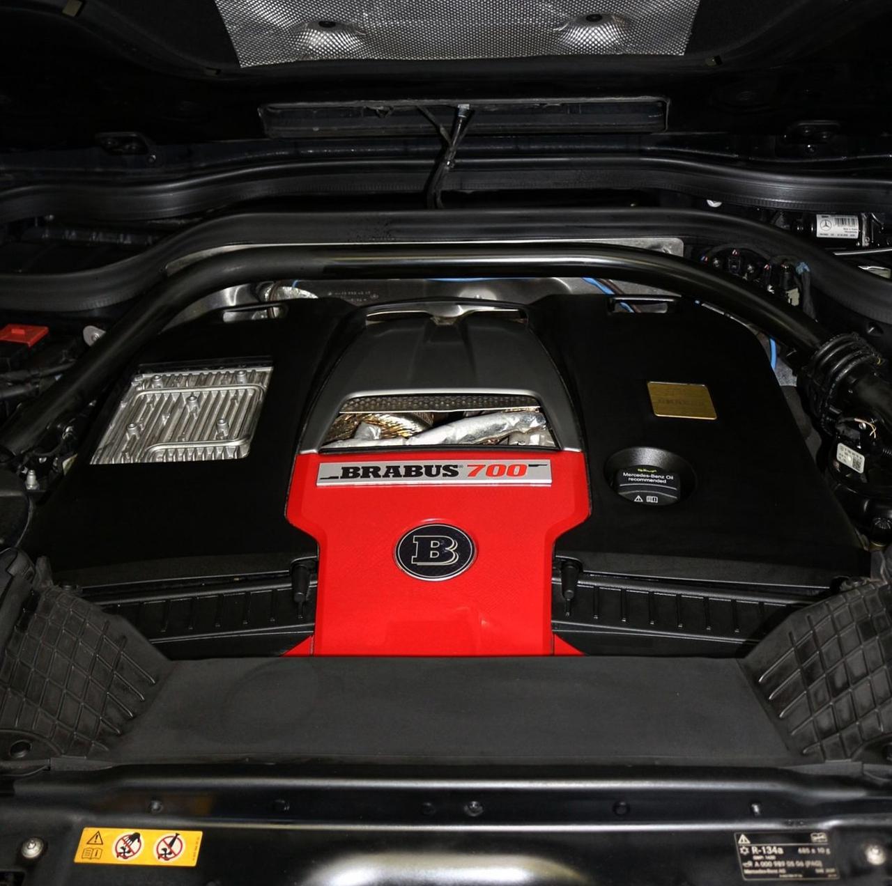 2020 Mercedes-Benz G700 by Brabus features a 4.0-liter V8 twin-turbo engine delivering 700 horsepower and 950 Nm of torque, achieving 0-100 km/h in approximately 4.5 seconds. It includes a full Brabus exterior kit and 23-inch wheels. Interior upgrades feature Brabus custom floor mats and unique trim, while the original seats remain unchanged.