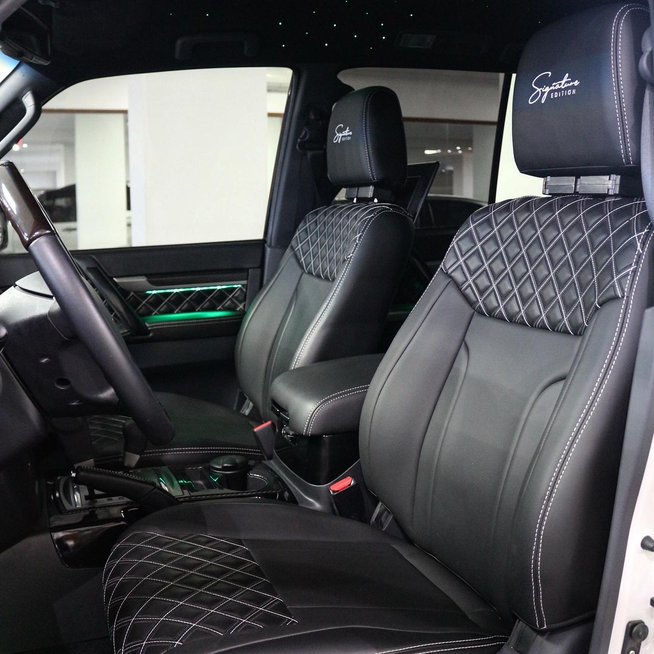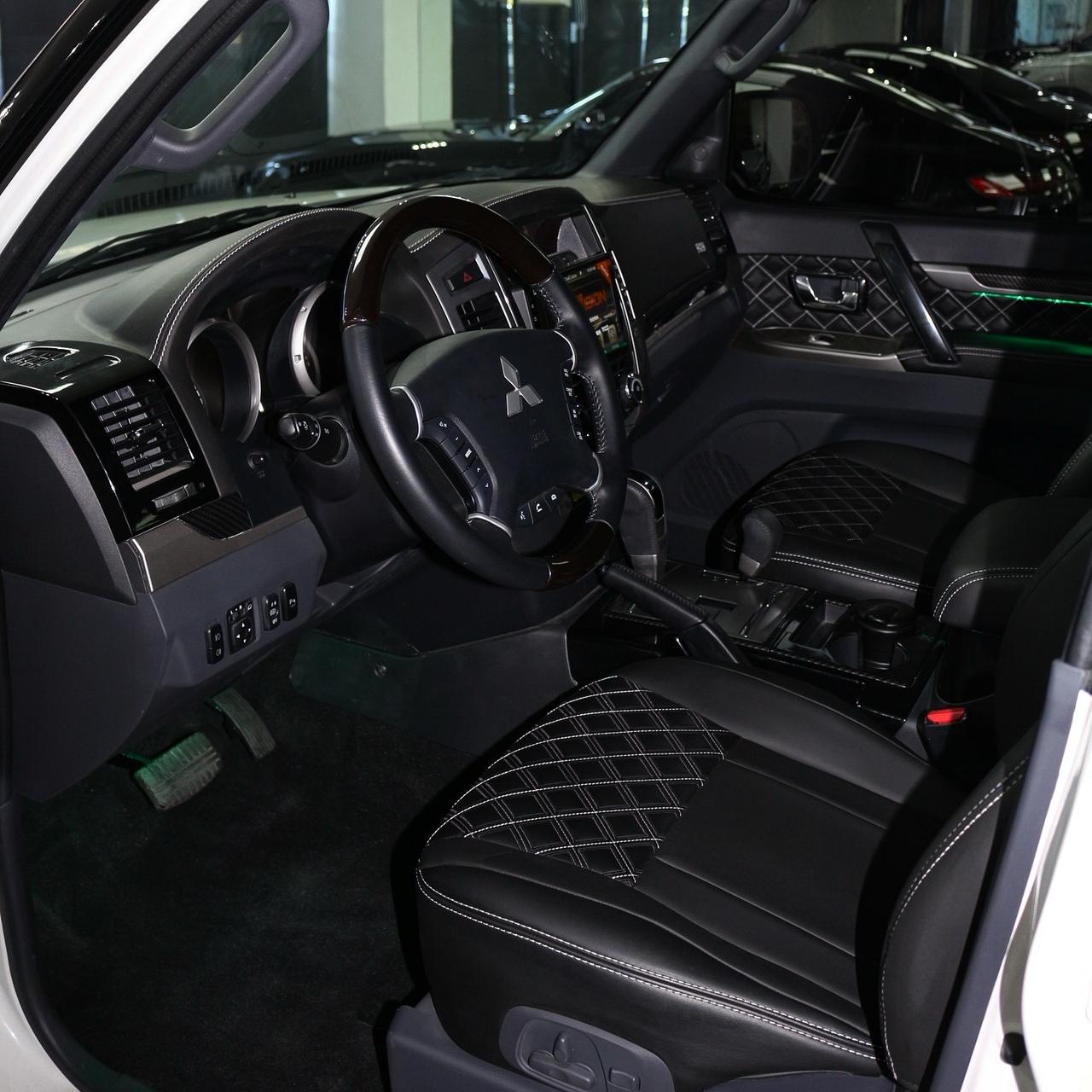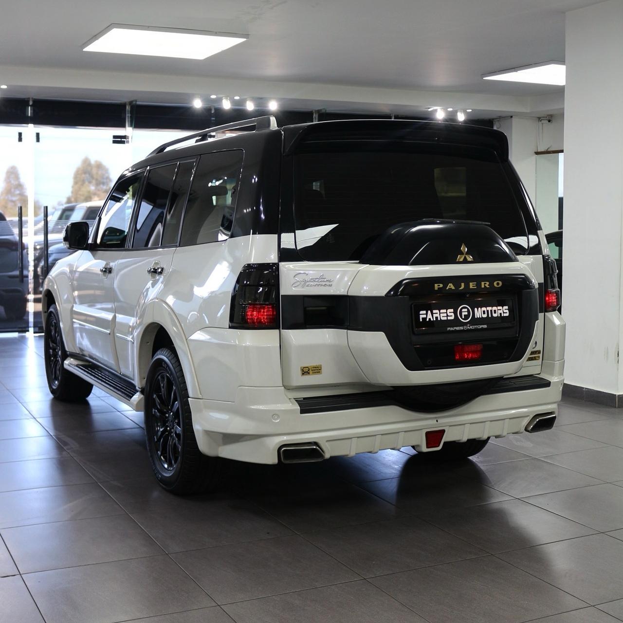 2020 Mitsubishi Pajero GLS with a powerful 3.8L V6 engine. This 0km, 7-seater SUV boasts a striking white exterior and a stylish black interior—perfect for families.