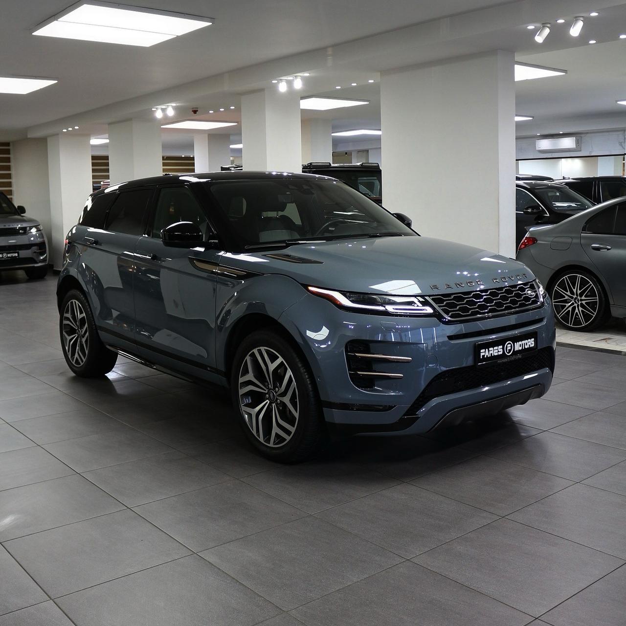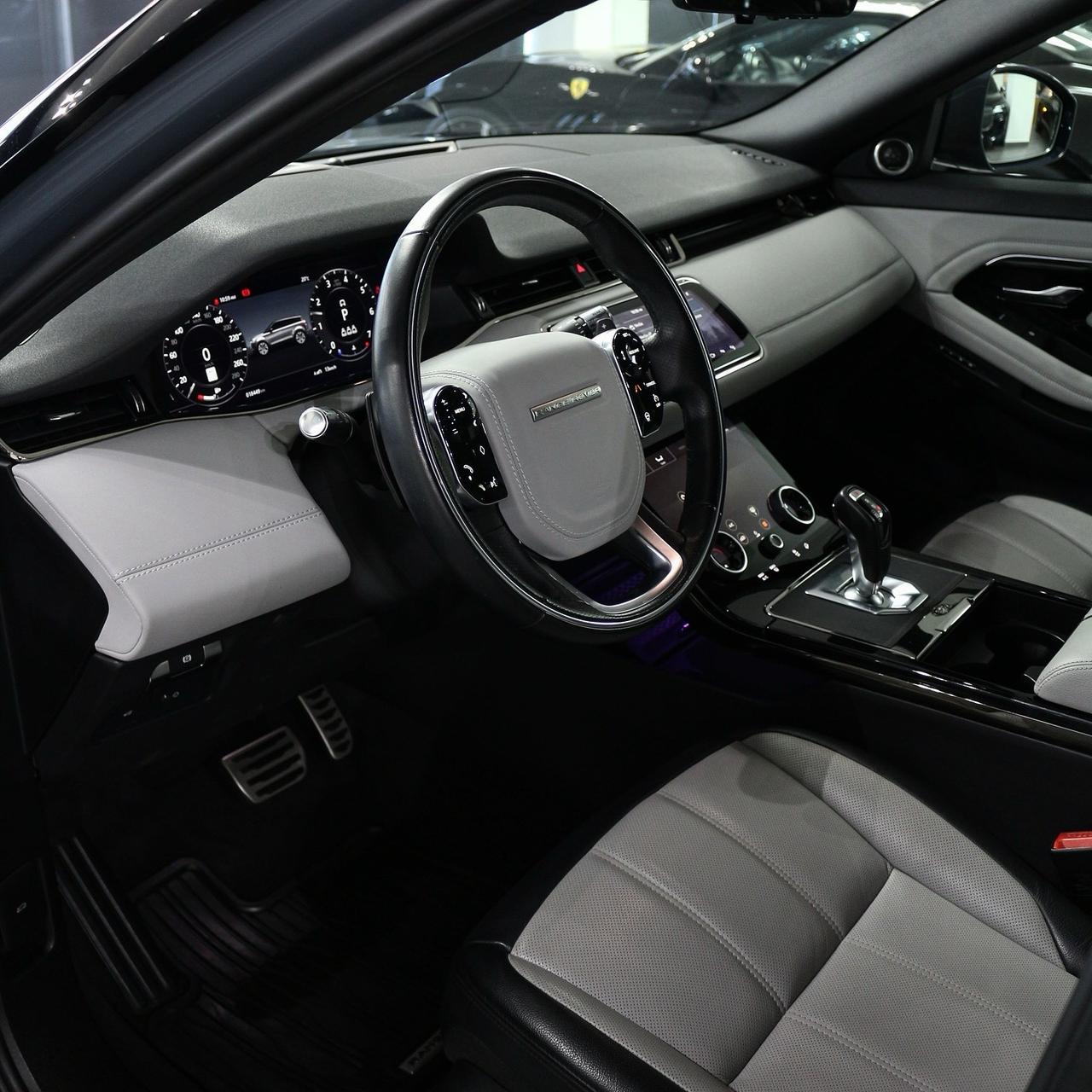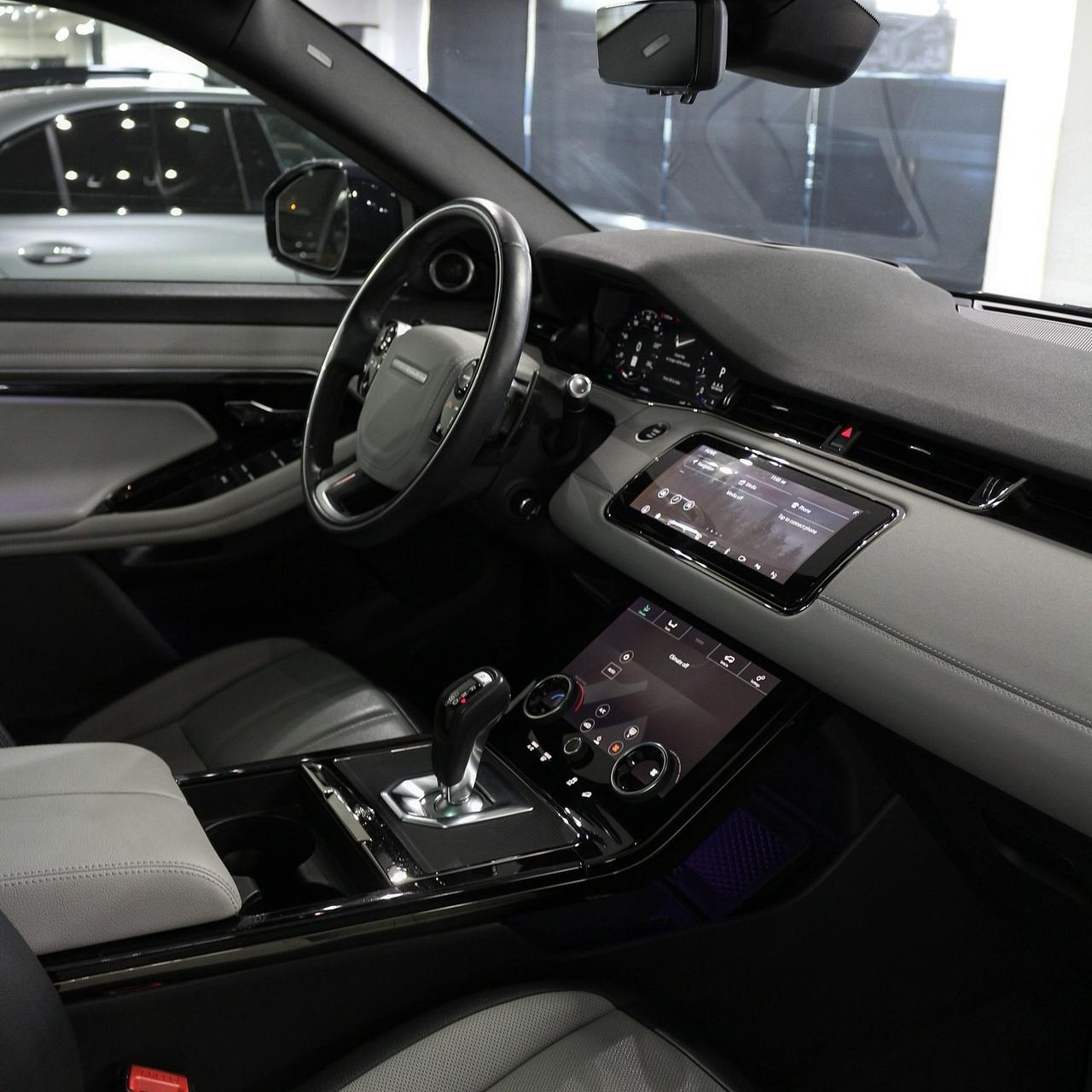 2020 Range Rover Evoque R-Dynamic features a 2.0L turbocharged engine (246 hp, 269 lb-ft torque), 9-speed automatic transmission, standard AWD, sporty design, and luxury features