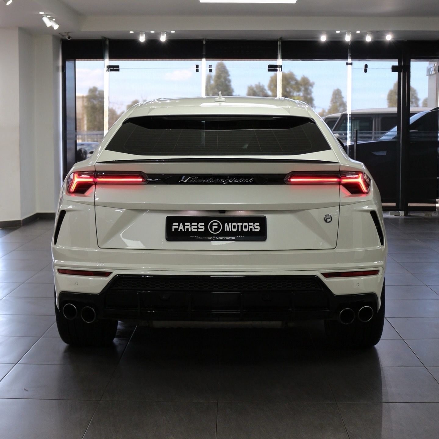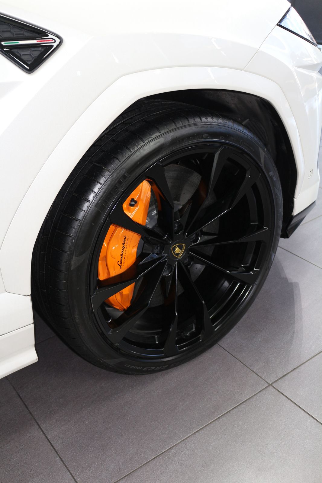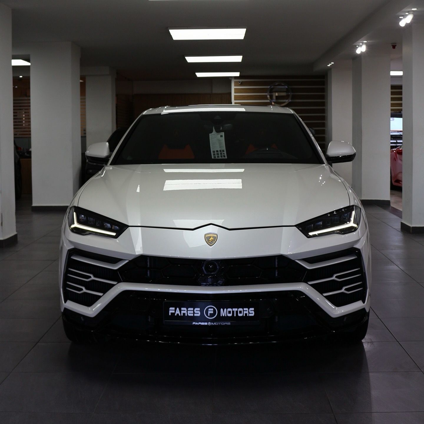 2022 Lamborghini Urus, with just 5,000 km on the odometer, features a white exterior and a striking orange and black interior. Its 4.0-liter twin-turbo V8 engine produces 641 hp, enabling a 0-100 km/h sprint in 3.6 seconds and a top speed of 305 km/h, combining bold design with exceptional performance.