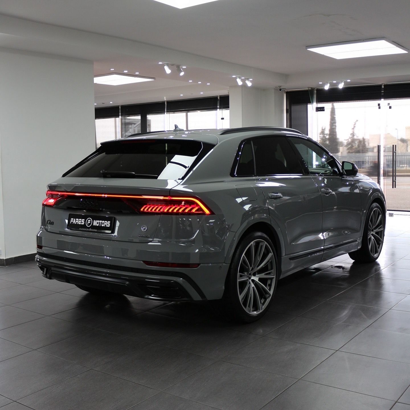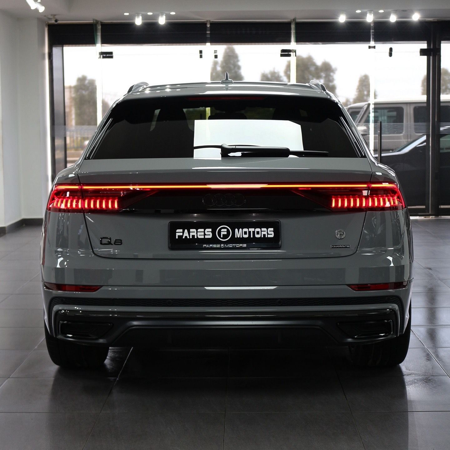 2023 Audi Q8 S Line, just 5,000 km, boats a 3.0l v6 (335 hp, 369 lb-ft), 8-speed auto, Quattro AWD, and mild-hybrid efficiency. S Line trim enhances it with sporty styling and premium features-perfect blend of performance and luxury.