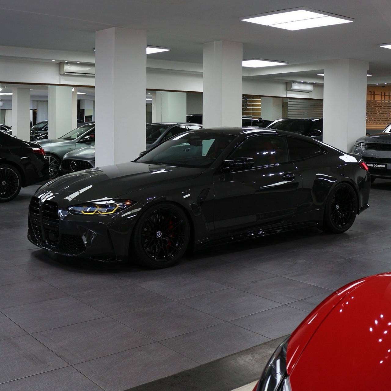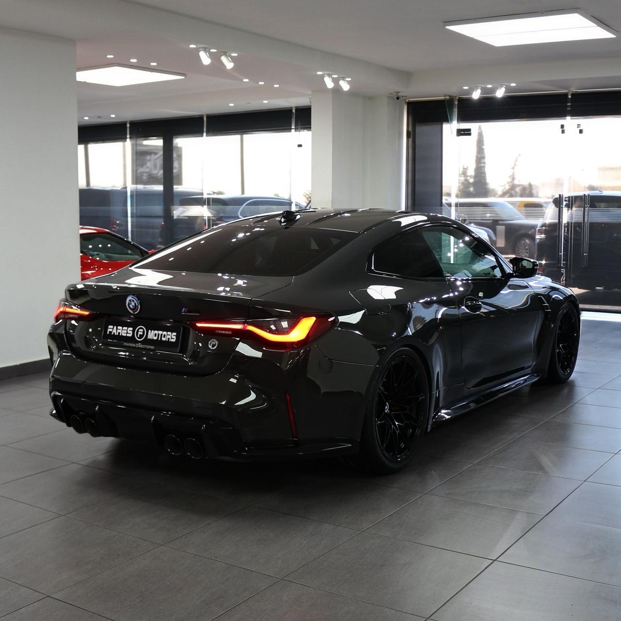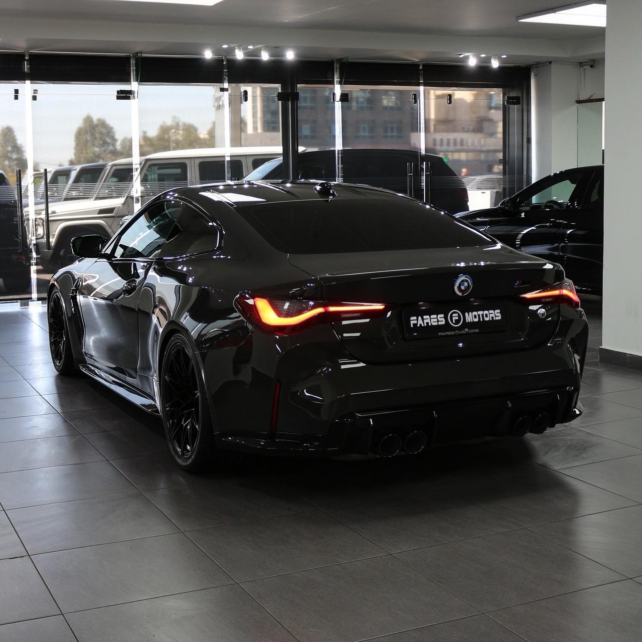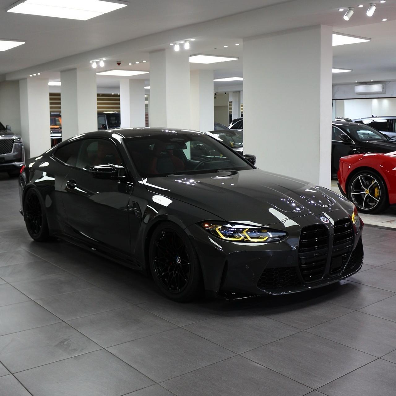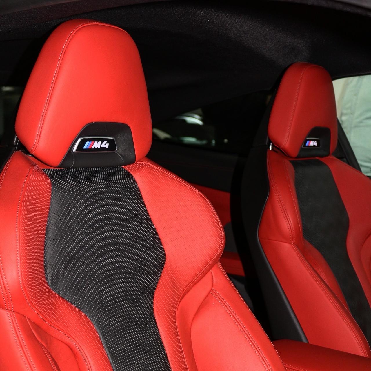 2023 BMW M4 Competition with 13,000 miles 3.0-liter twin-turbo inline-six 503 hp, 479 lb-ft and an 8-speed automatic, reaching 0-60 mph in 3.4 seconds. Its low mileage and striking red interior make it a standout performance car.