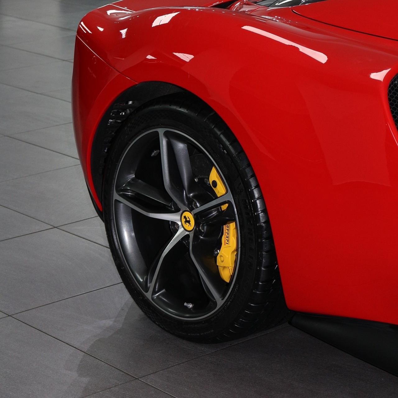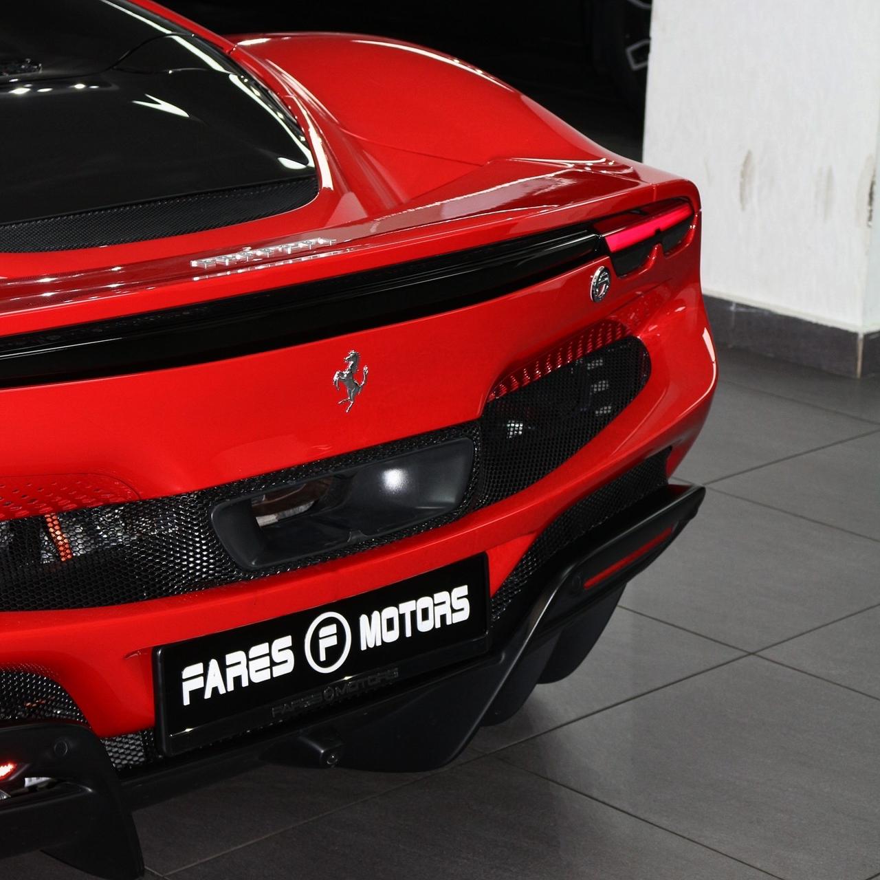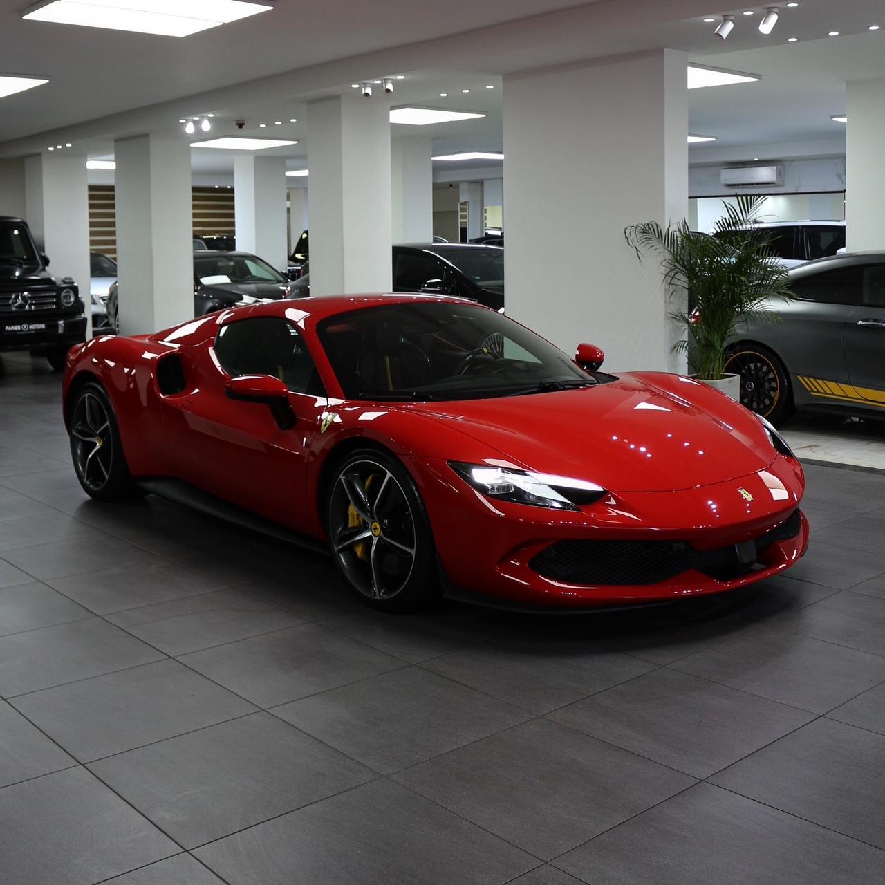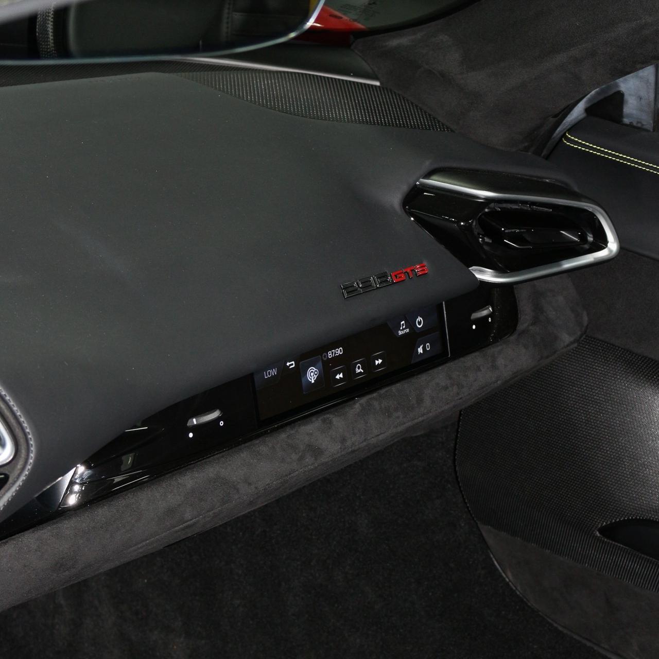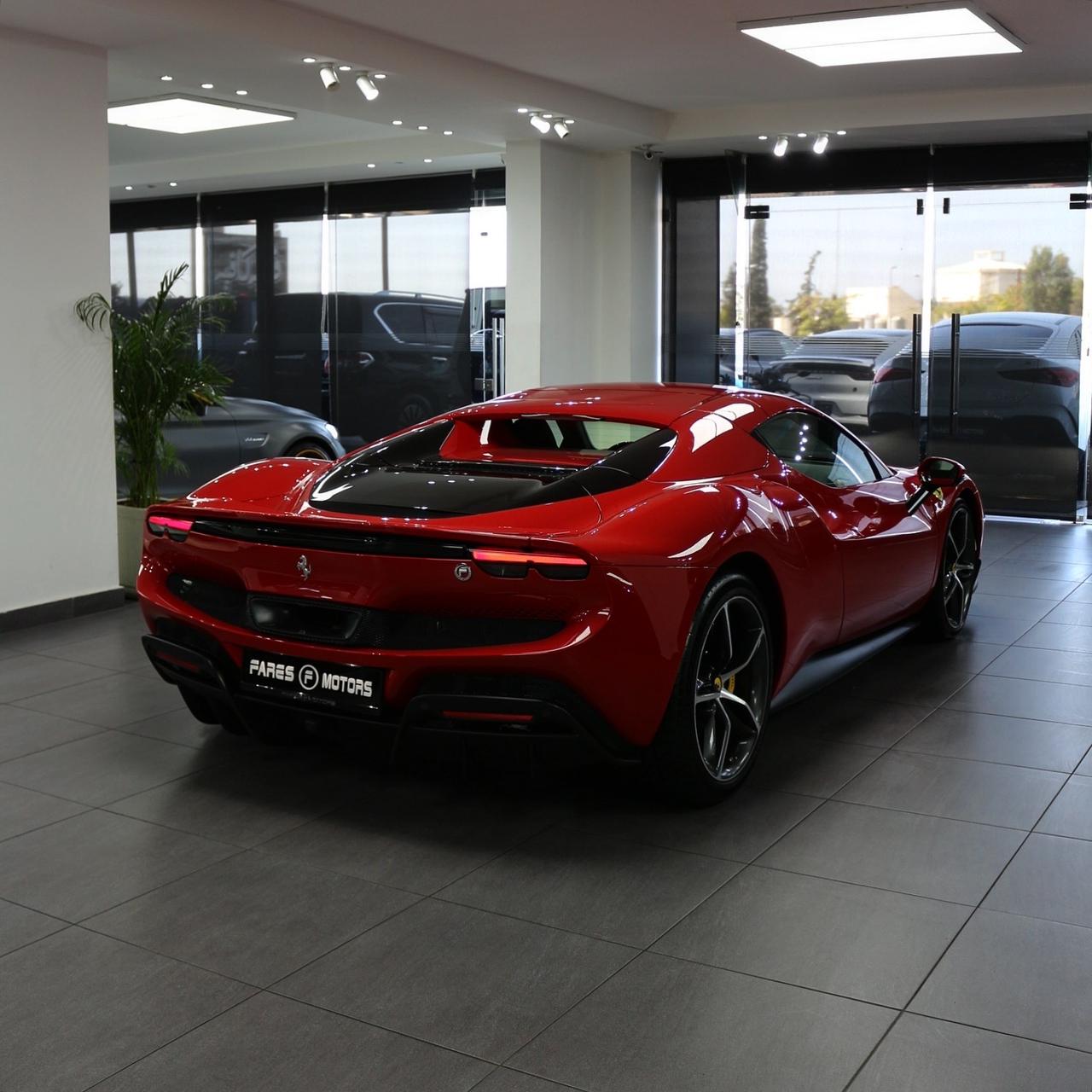 Brand new 2024 Ferrari 296 GTS in red with black & yellow carbon fiber interior, packing 819hp from its twin-turbo V6 hybrid for unmatched open-top performance and style.