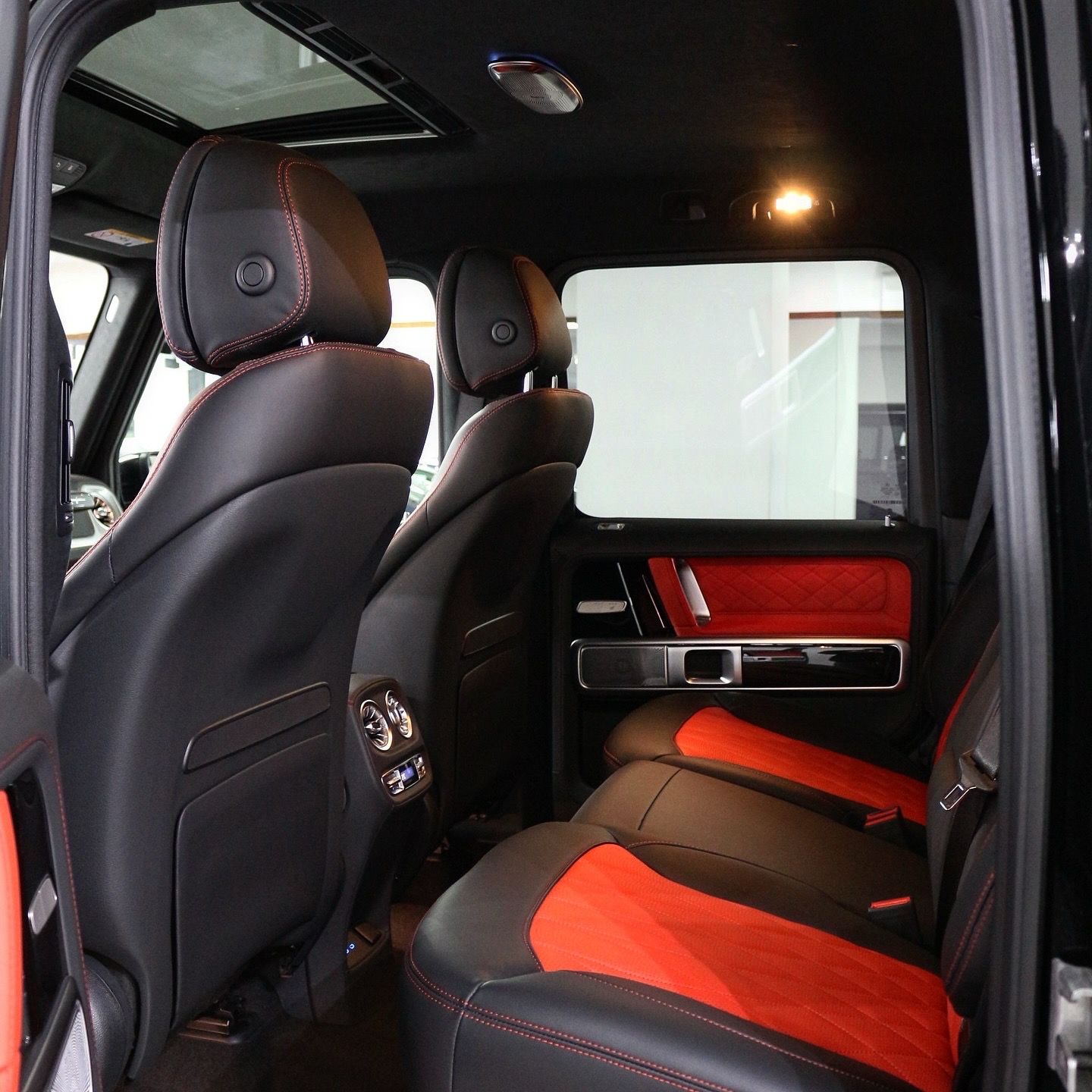 2025 Mercedes-AMG G63, Black on Red and black is a masterpiece of power and luxury. With a handcrafted 4.0L V8 biturbo engine delivering 577 HP and 850 Nm of torque, this icon rockets from 0-100 km/h in just 4.4 seconds.